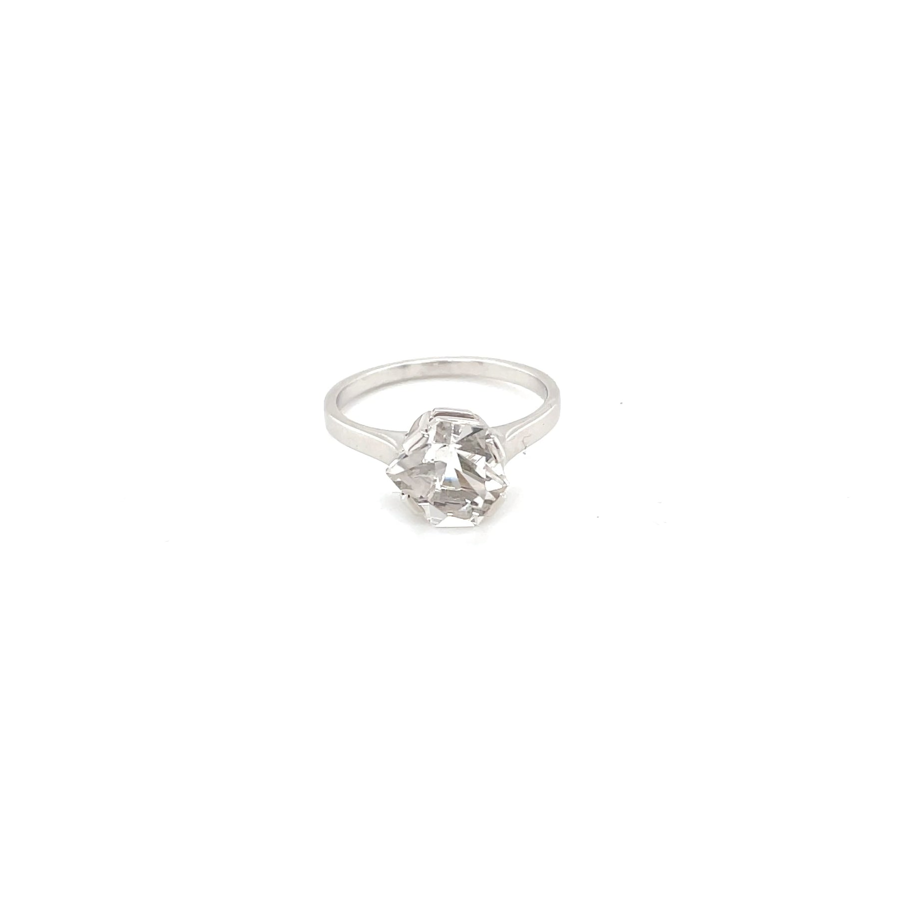 Zarter Ring aus 8kt Weißgold mit einem Bergkristall im 21st Century Cut Schliff